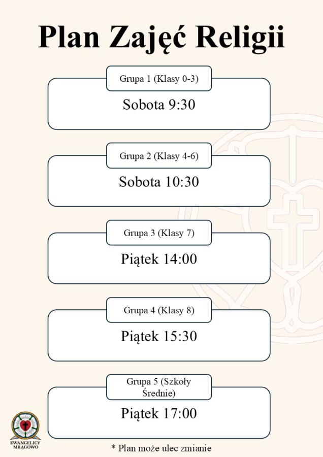Plan Lekcji Religii 17 września 2025 by BPolok Po przeanalizowaniu planów lekcji we wszystkich szkołach, mieszczących się na terenie naszej parafii, wstępnie ustalono poniższy plan lekcji.Plan ten może ulec zmianie.Dodatkowych informacji udziela Kancelaria Parafialna.
